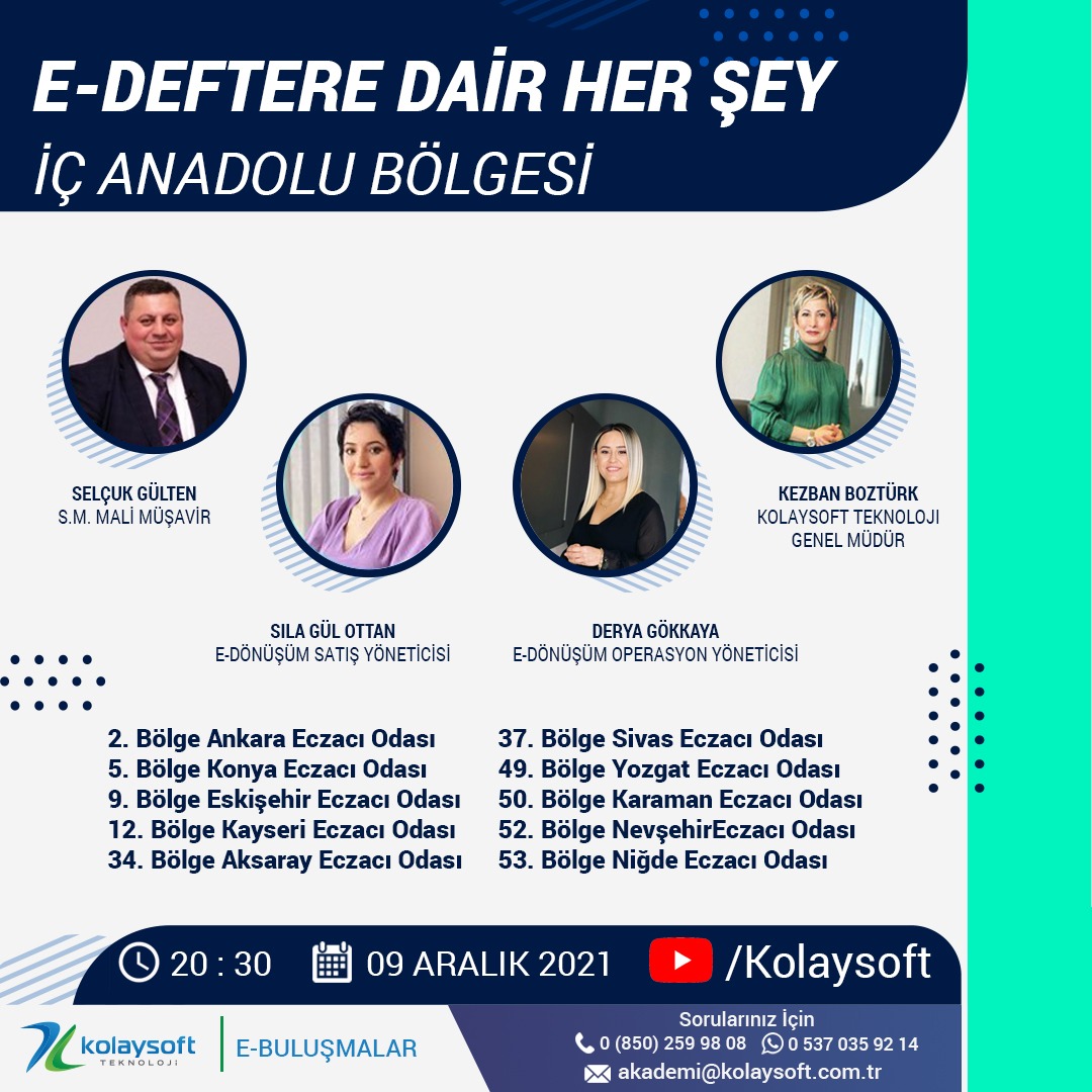 01 Ocak 2022 tarihinde geçilmesi zorunlu olan e-defter hakkında odamız işbirliği ile Kolaysoft firması tarafından video konferans yöntemi ile bilgilendirme yapılacaktır.