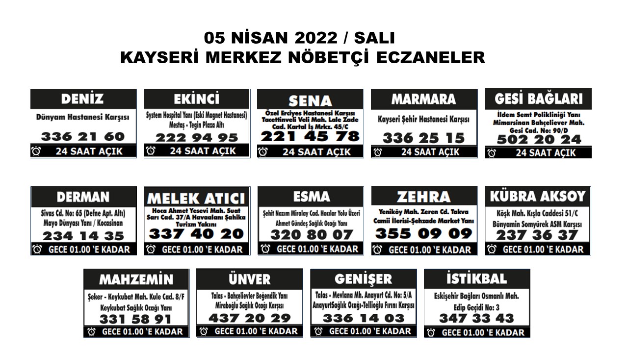 Kiçikapu Meydanı Zekibey Apt. No:26 D:5 Melikgazi/Kayseri 444 4 329 (ECZ)
