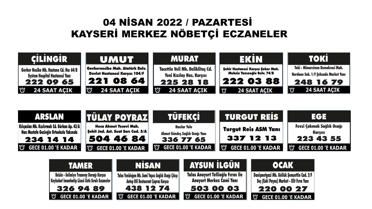 Kiçikapu Meydanı Zekibey Apt. No:26 D:5 Melikgazi/Kayseri 444 4 329 (ECZ)